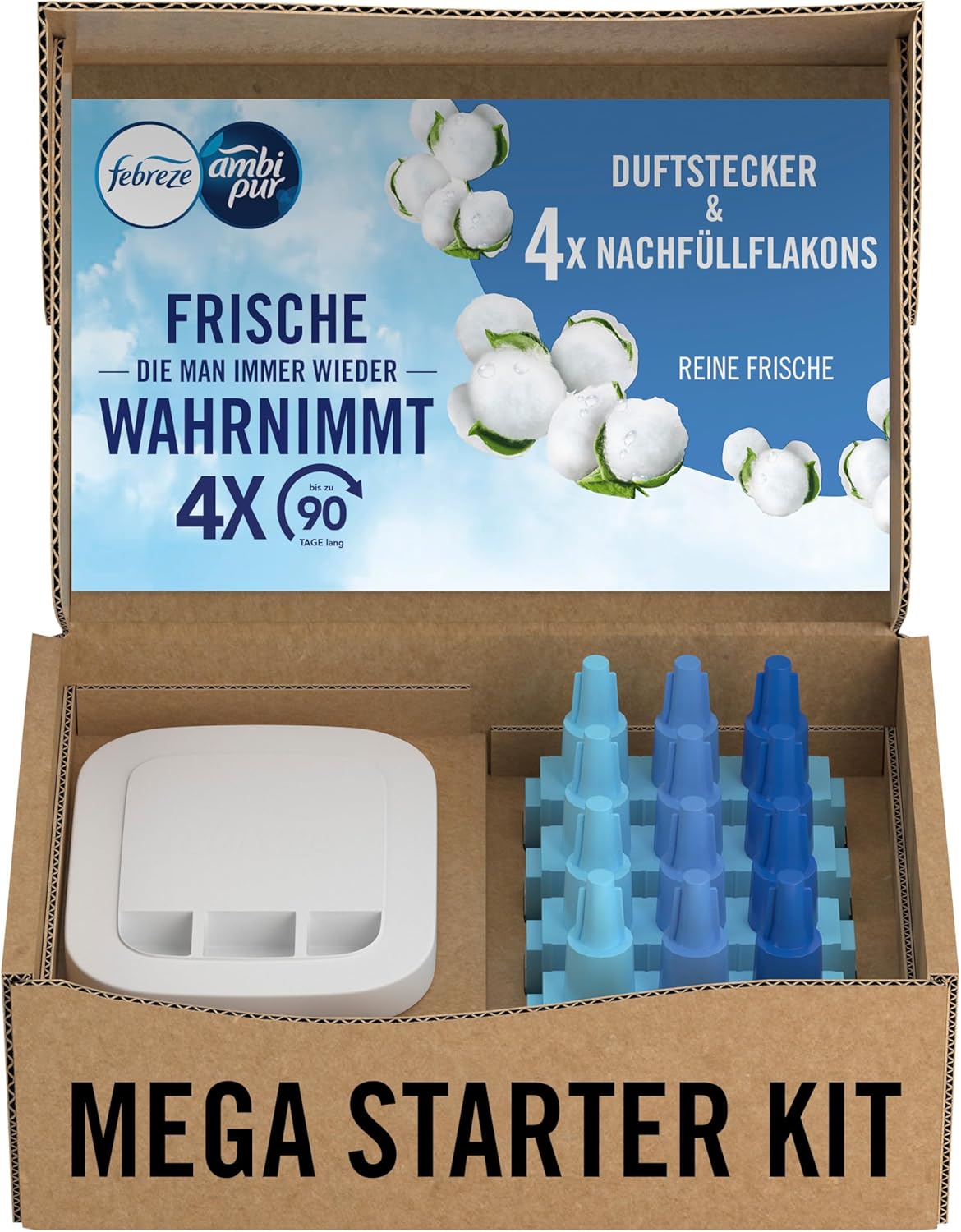 Op til 90 dage duft ved brug på laveste indstilling, 12 timer dagligt.